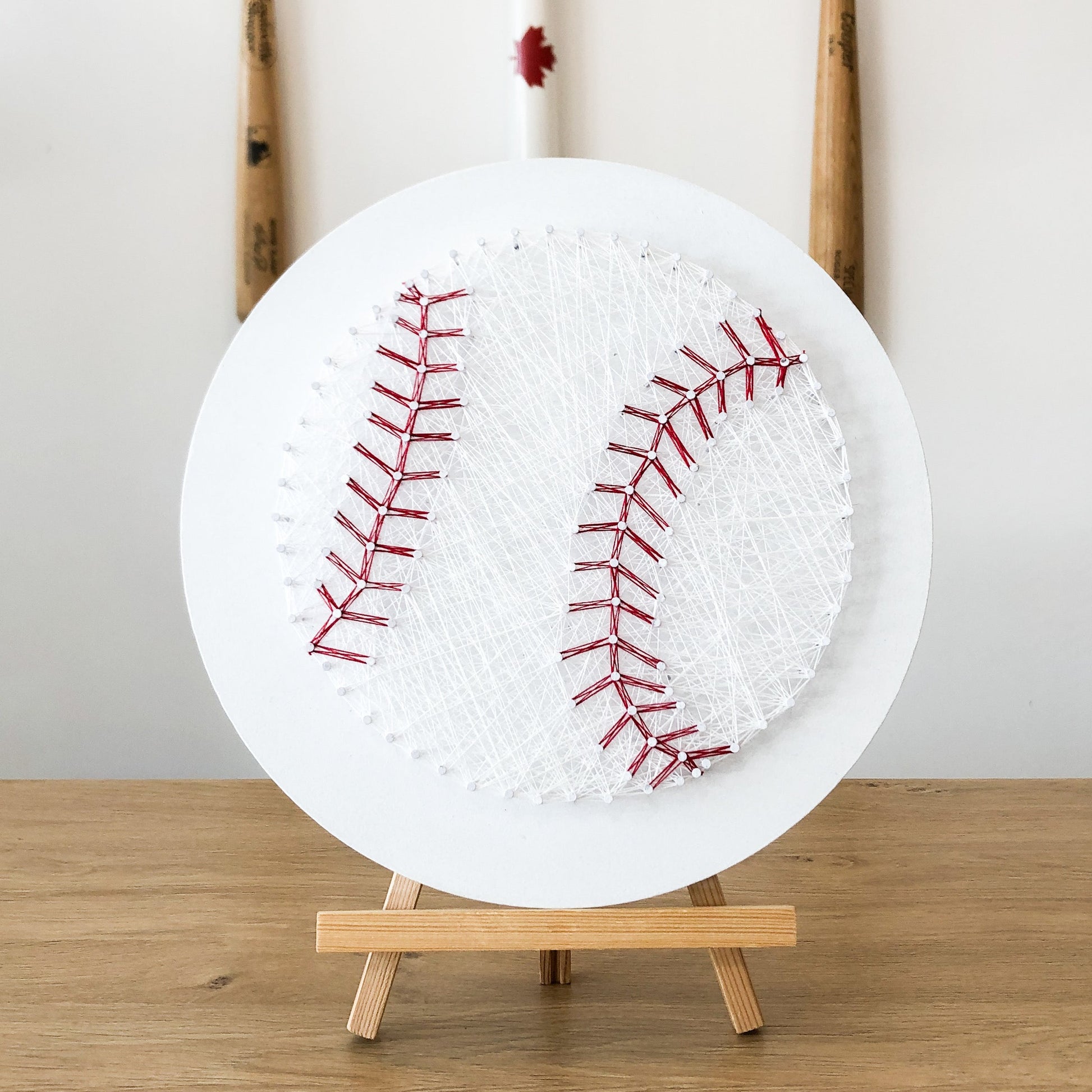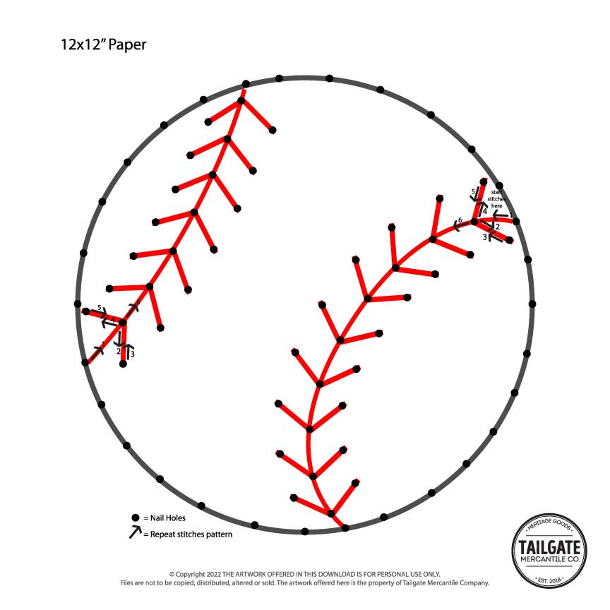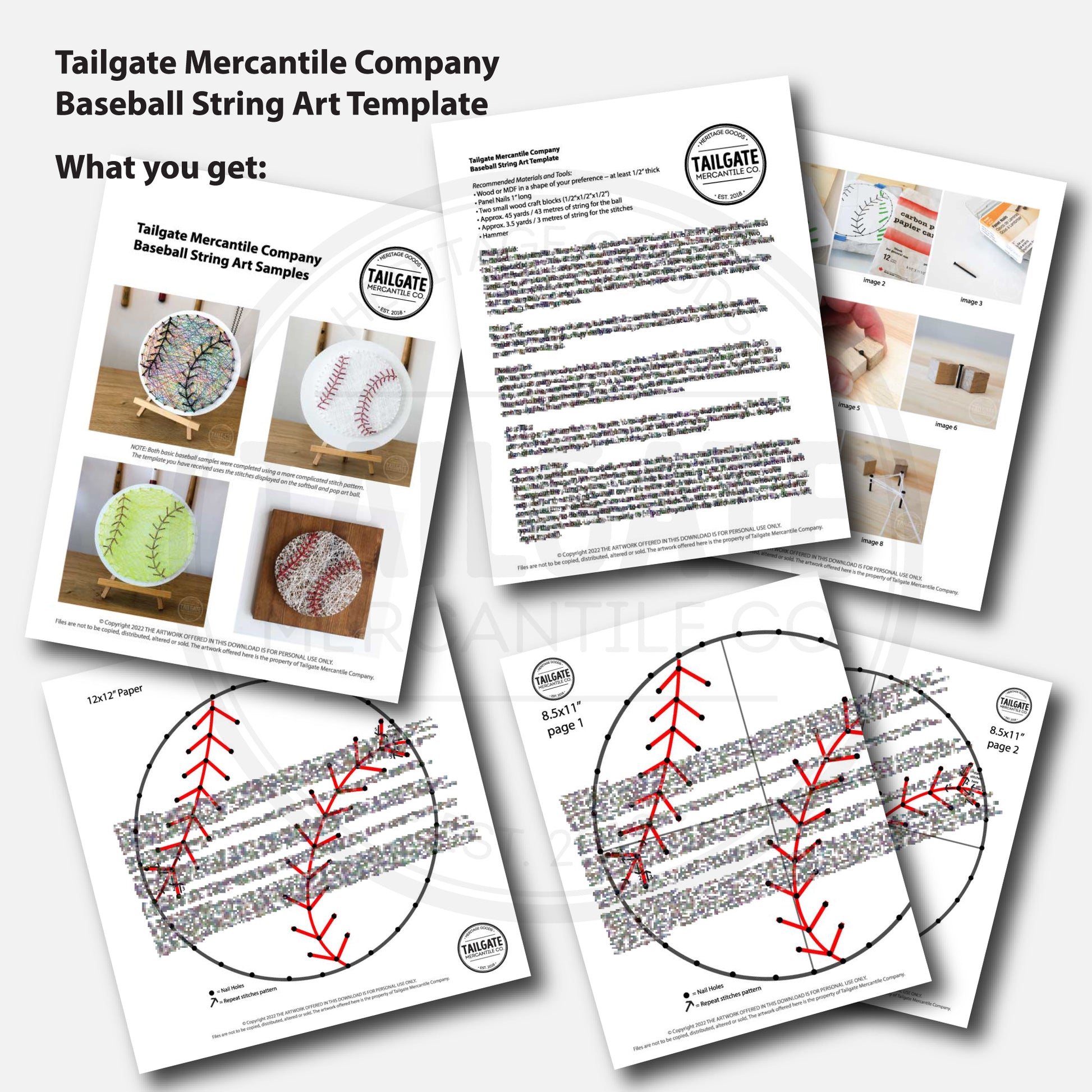 This is a DIGITAL download for a PRINTABLE TEMPLATE to complete a baseball string art project. The finished string art measures 9" in diameter.