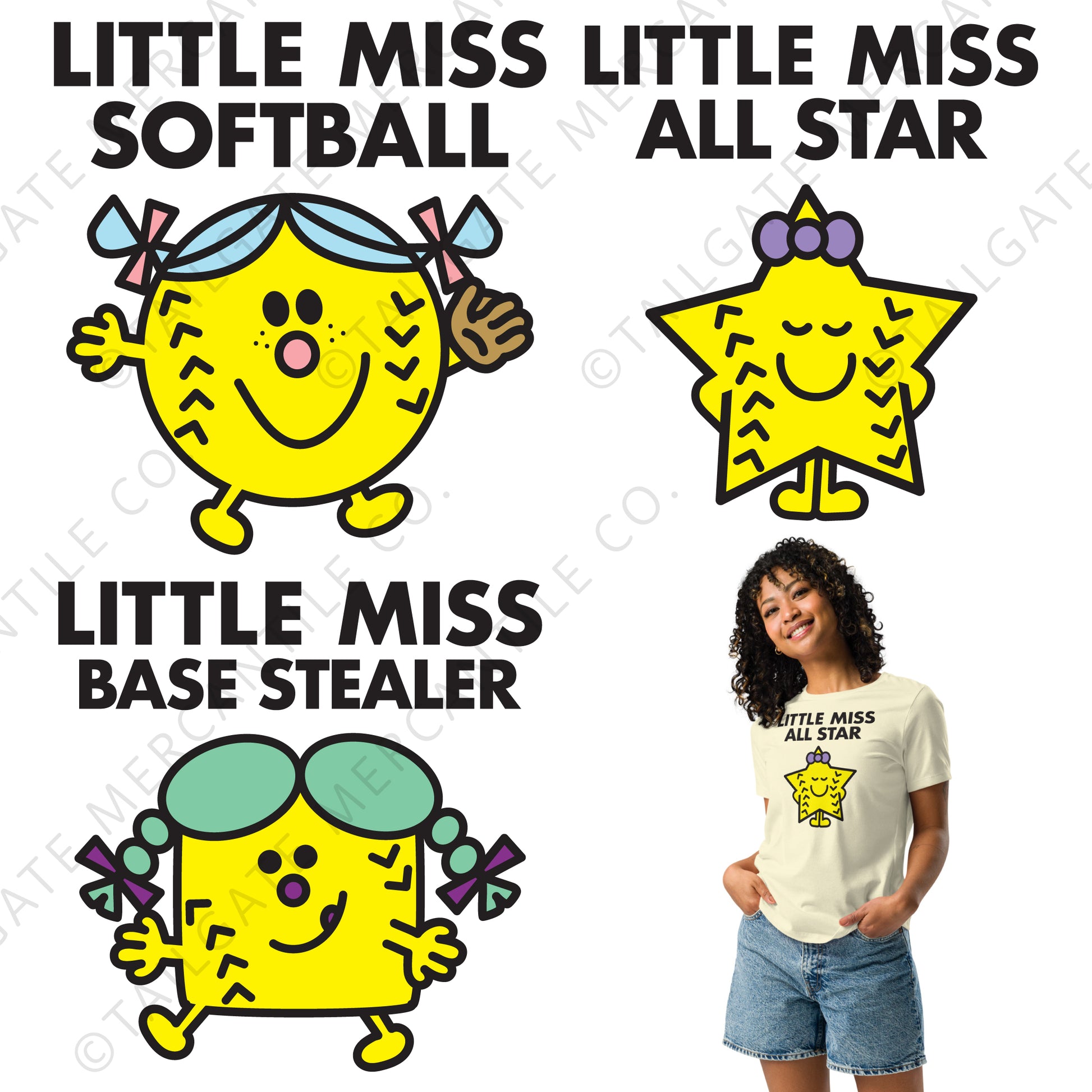 Create custom tees, hoodies, mugs, bags, etc. using these Little Miss Softball designs! The set includes three different designs: Little Miss Softball, Little Miss All Star, Little Miss Base Stealer. Colours shown are for display purposes only; colours can be edited using your design software. Get creative and change the designs to match your softball team colours!